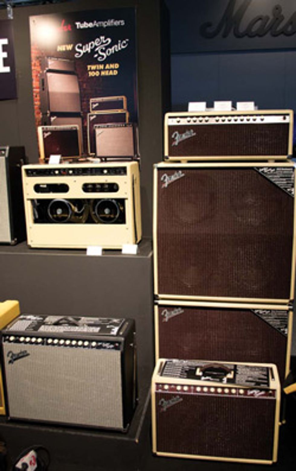 wrapped in classic Fender livery. The 100-watt, 6L6-driven Super-Sonic Twin (lower left;