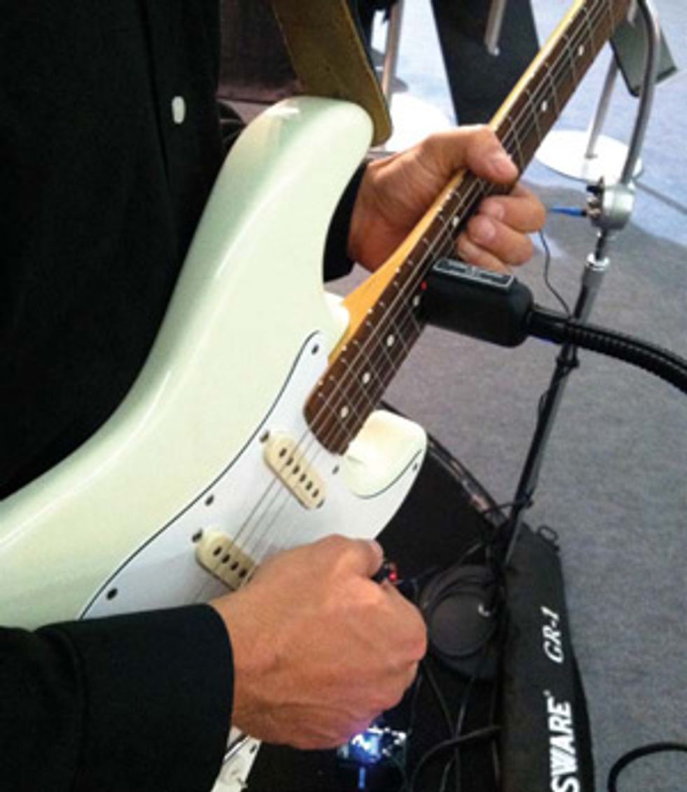 infinite sustainer. The mic-stand-mounted unit can sustain multiple strings