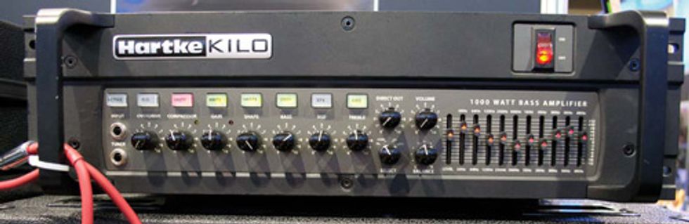 Hartke's potent new head kicks out 1000 watts of bridged mono power that can be split into 500 watts of stereo power. It has a tube