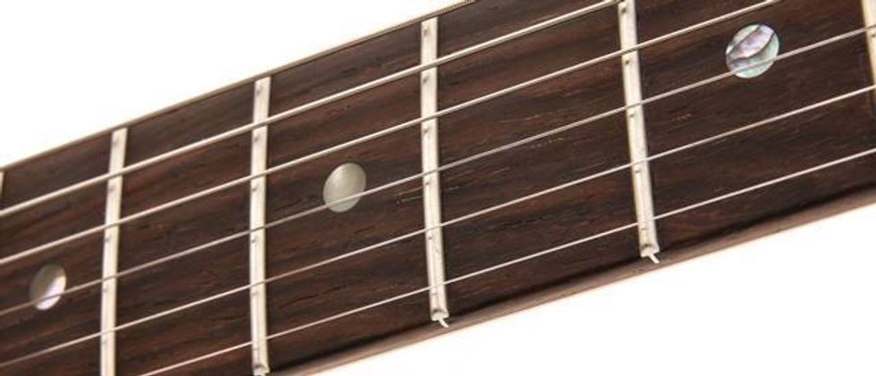 The final fretwork is exemplary—they’re perfectly seated and the ends are immaculately dressed.