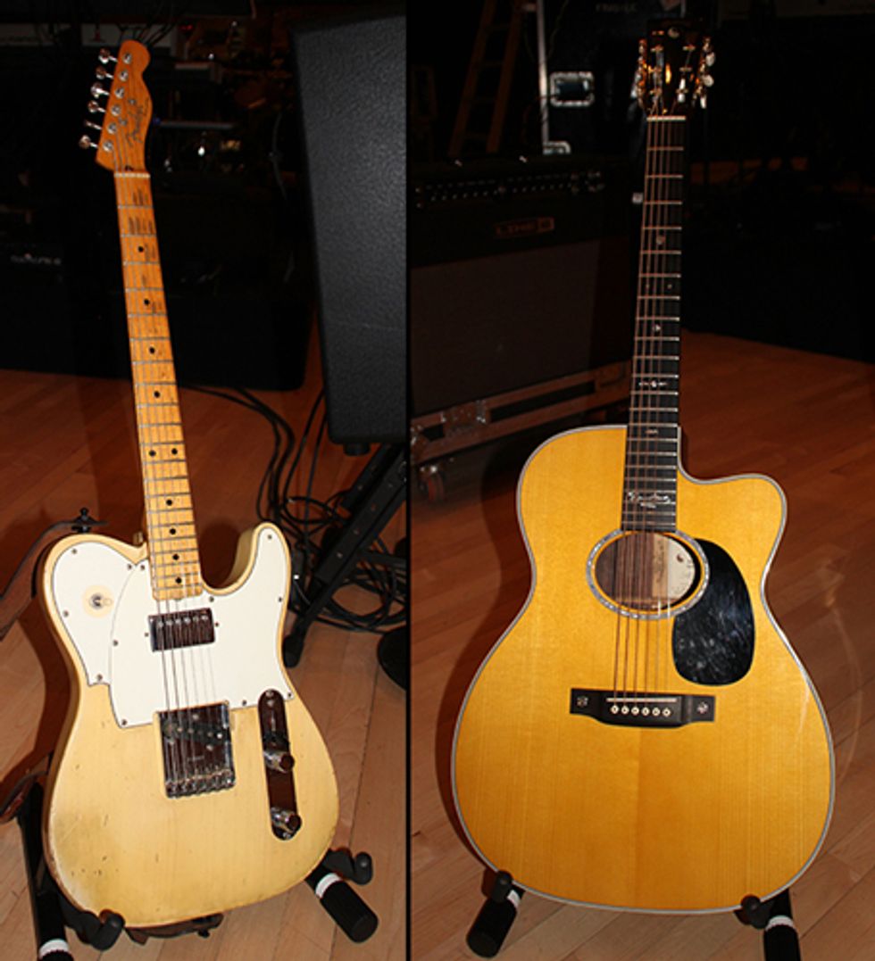 Also on tour is a 1955 Fender Telecaster with added neck humbucker and a 3-way upper-bout switch and individual string saddles (also for “Awaken”) and Portuguese 12-string acoustic tuned E–B–E–B–E–Ab (for “I’ve Seen All Good People” and “Wonderous Stories”). Not pictured is a Gibson Steve Howe signature ES-175 with middle humbucker and ES-5 Switchmaster-style switching (functions as a standby to No. 2 and for Fragile tunes that originally featured a Gibson ES-5 Switchmaster), double-neck Fender steel guitar with one neck in E-major tuning and the 6th string tuned to the same pitch as the 4th and another neck in E9 tuning (used on “Going for the One,” “Awaken,” and “And You and I”), 1956 Gibson Les Paul Custom “Black Beauty” (for “Turn of the Century”), and 24-fret Steinberger 12-string with EMG SA single-coils (for “Awaken”). Martin MC-38 Steve Howe signature model (for “Clap” and “Turn of the Century”)