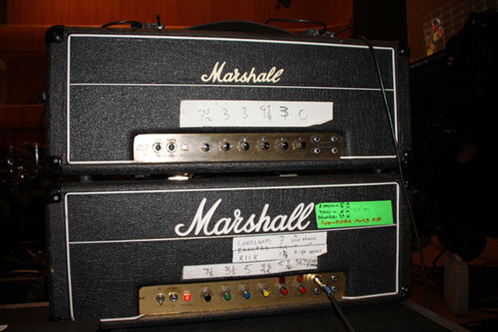 Squire has relied on the same two vintage Marshall heads for decades, though his main one—the 1965 JMP on bottom head—has never broken down so he’s rarely used the top one. (Wondering about those mods? For the 1978 Tormato tour, it was customized to work with a separate power amp feeding two custom 6x12 cabinets in which each driver was angled to fire in a different direction.)
