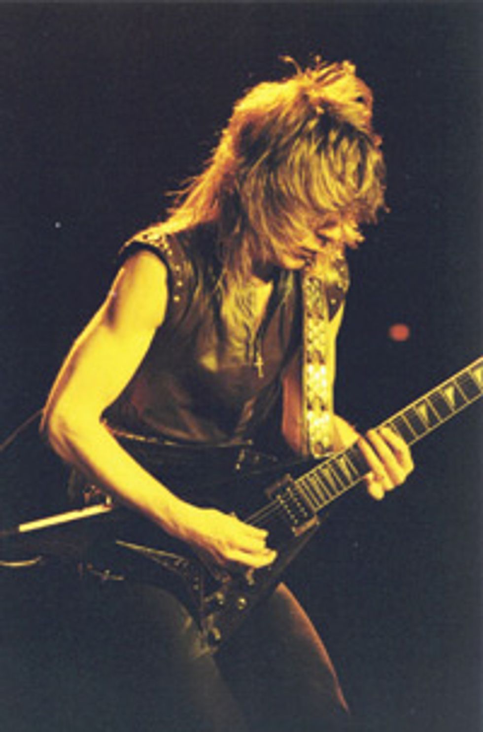 “Randy had that body shape drawing and it needed something that sort of matched it in radical-ness,” Jackson explains. “So I came up with the head. I had been a vintage guitar guy and was always a Gibson Explorer fan. I wondered what I could do to an Explorer head to make it more modern and aggressive looking. Randy and I sketched around that idea and came up with the head, which later became a trademark.” Charvel began making the guitar a few days after Christmas and Randy went back to England after the holidays.