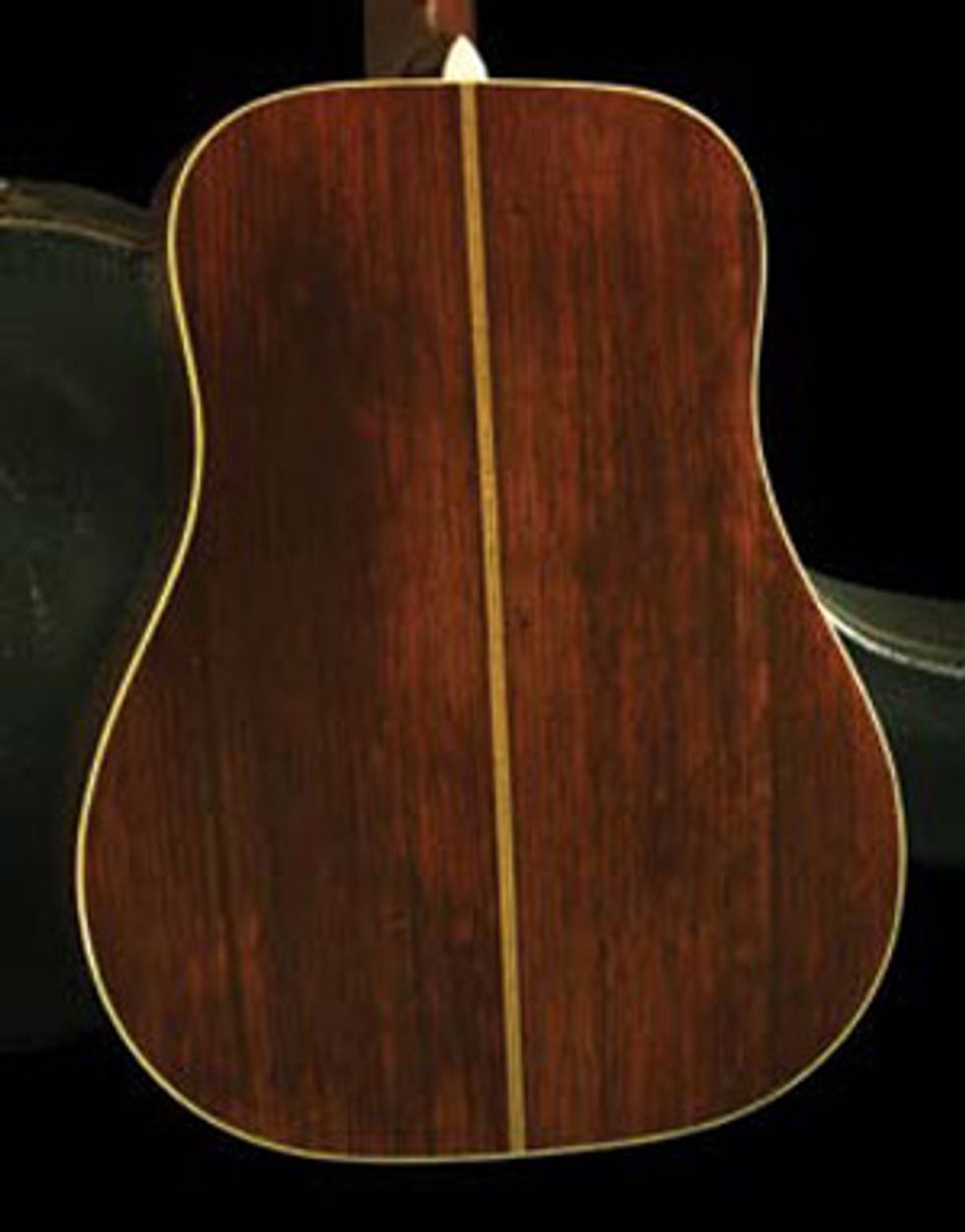 ebony “belly” bridge, and a 14-fret neck joint. BOTTOM: This D-28’s Brazilian rosewood back and