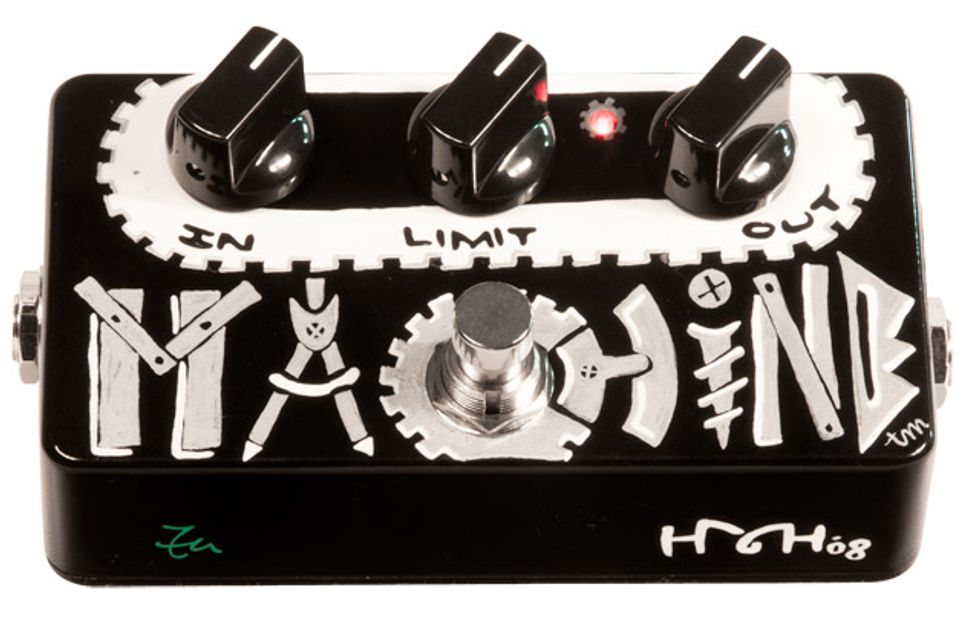 Z.Vex Machine - Part of what has garnered Z.Vex pedals a lot of space on the pedalboards of guitarists is their creative and sometimes totally off-the-wall circuits. The Machine definitely falls in both of those categories. A typical distortion pedal achieves its tone by pushing a circuit beyond its limit, consequently hacking off the top and bottom of the waveform. The Machine is the exact opposite—it distorts the signal during its quieter moments. On its own, the result is what you might expect—the dry signal somewhat preserved with an ungodly, noisy distortion sustaining throughout. This may sound absolutely disgusting—and in some ways it is—but, on the other hand, you retain a lot of dynamic expressiveness while your overall tone has the impression of total raunch. Input level, output level and a Limit control round out the control set.
