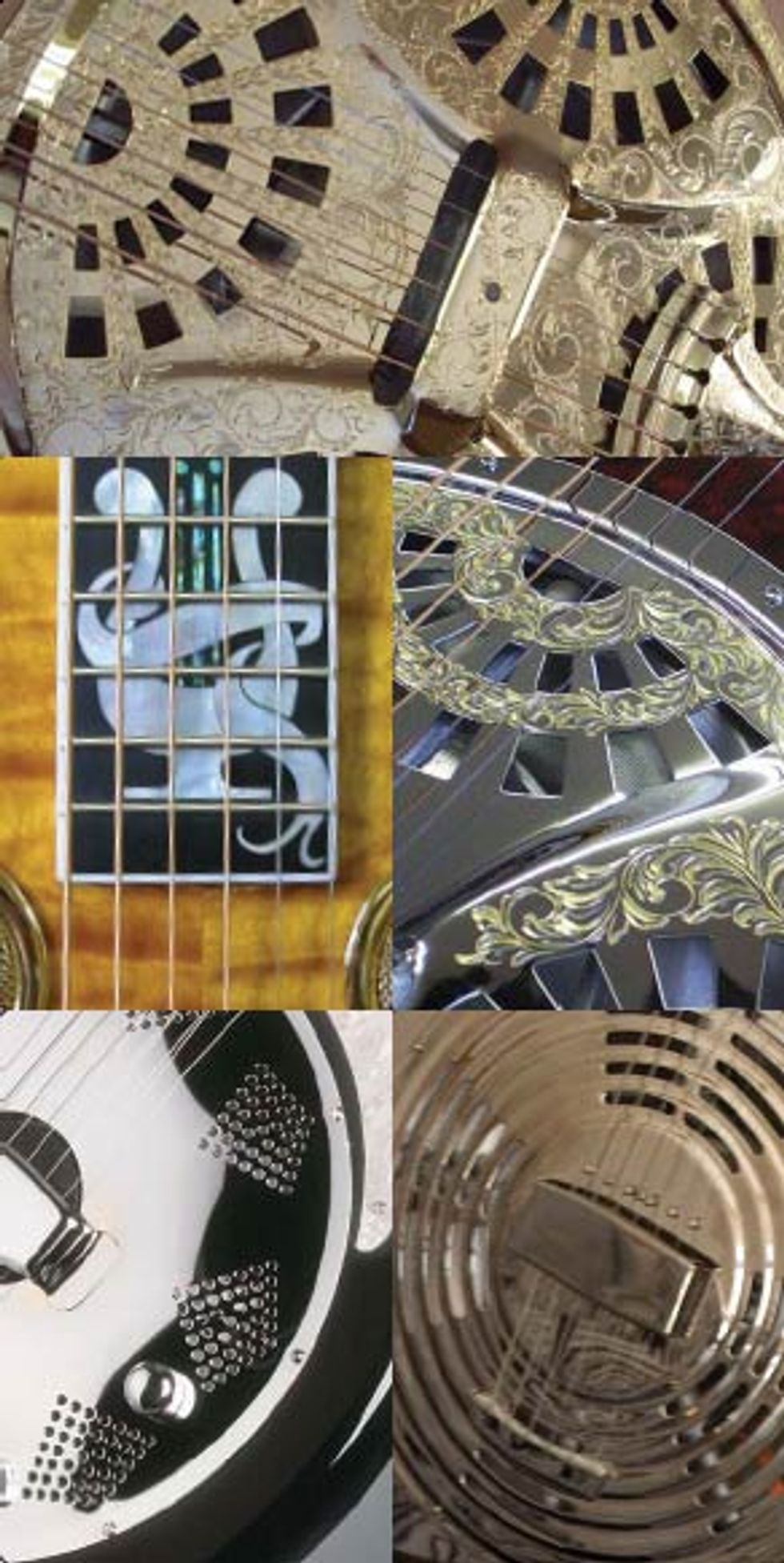 We’re still of the old school; we still do the old parallelogram soundwells. You know, the resophonic world has gotten a lot of great builders involved, and there are a lot of ideas around the acoustic side, about what makes those instruments sound and do what they do. They’ve come up with the baffle system and the soundpost, and all these different variations throughout the years, but it’s kind of funny, because we did the baffle systems back in the seventies, 15 years before a lot of these builders even thought of building instruments. We did soundposts, we did soundwells, we did no soundwells, we did parallelogram soundwells—we’ve experimented throughout the years. I love the old parallelogram soundwells and their tonal qualities. We’ve experimented, and we offer different depths and waist dimensions and all of that, but a lot of those types of things are built on custom orders.