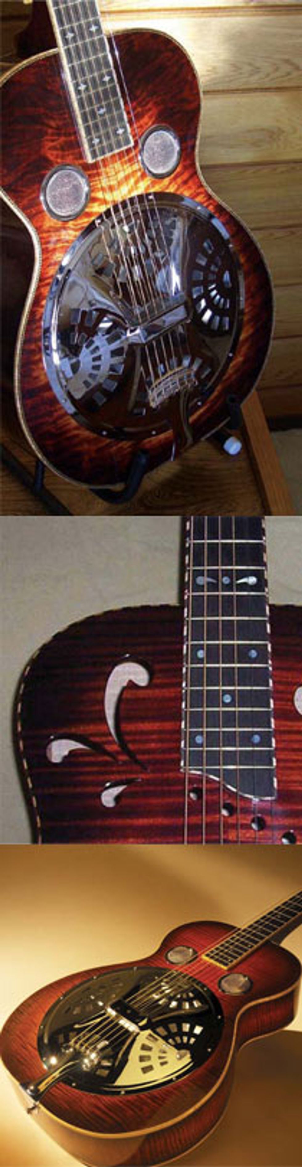 [laughs] That guitar is kind of an over-the-top departure, since I’m a very mechanical person. It allows you to put all three resonator systems in it—it comes with a 9-1/2 biscuit resonator, a 10-1/2 spider resonator, and the traditional tri-cone resonator. In the amount of time it takes to remove the coverplate screws and take the strings off, you can switch out the system. It’s really three guitars in one instrument.
