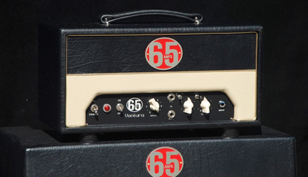 North Hollywood, CA (March 28, 2012) -- 65amps introduces The Ventura guitar amplifier, the latest addition to its more affordable “Working Pro” Red Line. The Ventura is a response to the over-saturation of "Lunch Box" amps in the market that are found lacking in quality for professional players. The Ventura illustrates that a compact, portable amp can be combined with high-level, professional functionality. The Ventura is made in 65amps’ factory in North Hollywood utilizing the high-level materials and engineering experience of the 65amps crew.