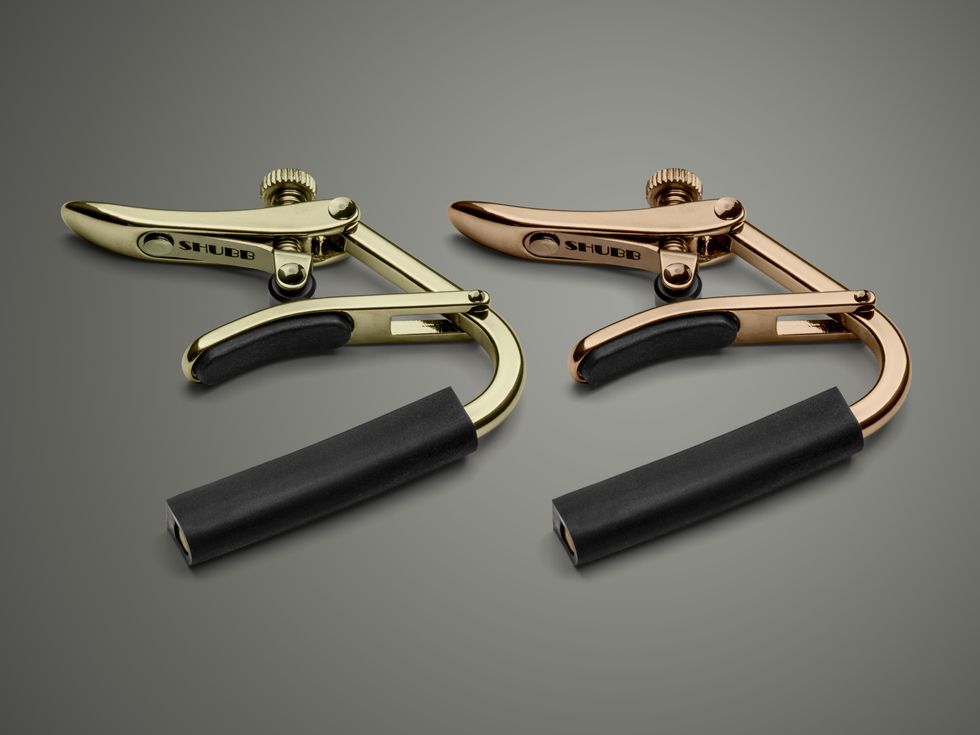 Shubb have had many requests over the years for a gold Shubb capo with a durable finish. It's common knowledge that gold plating on metal tends to wear fast and isn't the most durable. They are happy to announce the Capo Royale series of capos in two distinct finishes, gold and rose gold. These capos are finished with a PVD titanium base that looks and feels like actual gold, but will not wear down like gold.