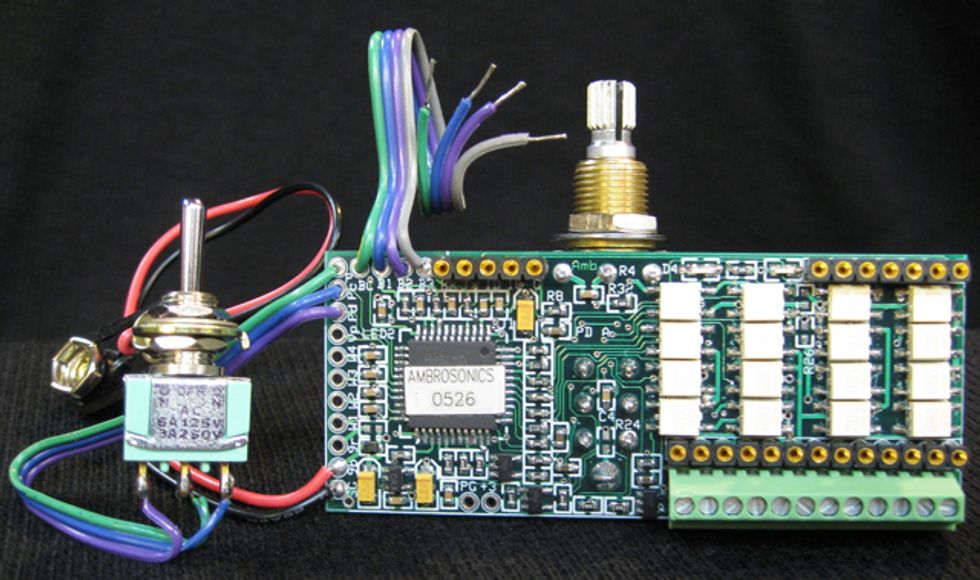 Connecticut, US (June 4, 2013) -- AMBROSONICS, LLC, a high technology music product company, introduces the Pickup Director now available in different models with expandable options. Pickup Director is a programmable and re-configurable pickup switching system with patented optical switching technologies. It’s designed to fit onboard many guitars and basses and runs from a single 9V battery. AMBROSONICS also offers a remote power pack so NO battery is required in the instrument.