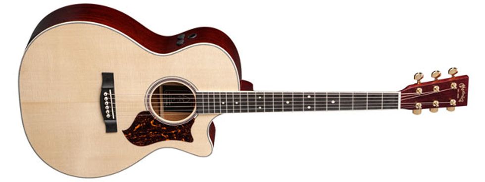 The Certified Wood flagship in the Performing Artist Series gets a name change and the new and improved Fishman F1 Aura + electronics featuring “Easy Mode.” Subtle refinements such as new tortoise color rosette design and back purling complete the new updated package. MSRP $3,399 and MAP $2,499.