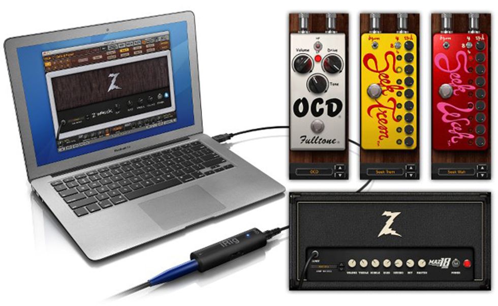 Plugging a guitar or bass into a Mac or PC is a breeze with IK's range of audio interfaces designed specifically for guitar/bass players: The new iRig HD provides high quality D/A conversion for iPhone, iPad, iPod touch and Mac. The StealthPedal audio interface and MIDI controller is a wah-style controller pedal and interface that allows players to control software knobs, buttons and parameters from the floor with familiar ease. The StealthPlug is a 1/4"-to-USB interface cable for Mac/PC.