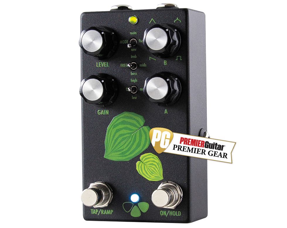 The subject of auto-wah engenders weird reactions among guitarists—ranging from puzzlement to indifference to outright hostility. But, like many things that provoke strong responses, lack of understanding is usually the main driver of skepticism. The guitarists with the most vicious reactions usually assume that an auto-wah does the wah-ing for you and little else—as if an oscillating filter were an affront to Jimi's ghost, or something. So it's fun to imagine a skeptic's surprise should they someday interact with the Flower Pedals Hosta—an analog auto-wah with a digital brain that imaginatively stretches the auto-wah concept with warm wah-pedal-like oscillations, quacky envelope filter effects, and deep “No Quarter"-style LFO modulations.