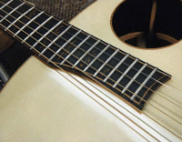 That started all the way back with Boaz. We were staying up all night, thinking about what materials we could use for frets. The steel or nickel fret makes sense from a manufacturer standpoint, because you can hammer them in. But you would never use that material for a nut or a saddle. So we were coming up with these weird materials, like beryllium, bone, and this plastic called Delrin. It's really all about enjoying your art and enjoying life and resisting. I'm very stubborn—I'm trying to resist becoming a factory. I get enjoyment out of becoming a guitar maker, being original, and using different materials.