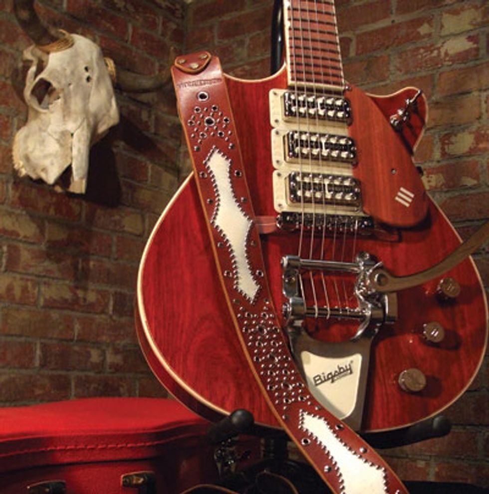 It's just one of those phone calls you get. I had put myself in the right spot, I guess. Some person who knew me knew someone who knew Jack's drummer at the time. Jack had the idea for a new band called the Raconteurs and, instead of making everything red and white like he does with the White Stripes, he wanted his color of choice to be copper. So he was looking for someone to make a copper guitar. So, Jack's people called me with this idea for a guitar called the Triple Jet, and it was going to have three pickups and all this cool stuff. On the first guitar, we actually painted the top—it was a copper top with metallic paint. He played that for about six months, and then they started their tour and I didn't like it. One day, I said, “Why don't we just make the thing out of real copper?" I took about two months and made the actual Triple Jet #2 out of real copper, and that's the one he uses all the time now. It's his number-one guitar.