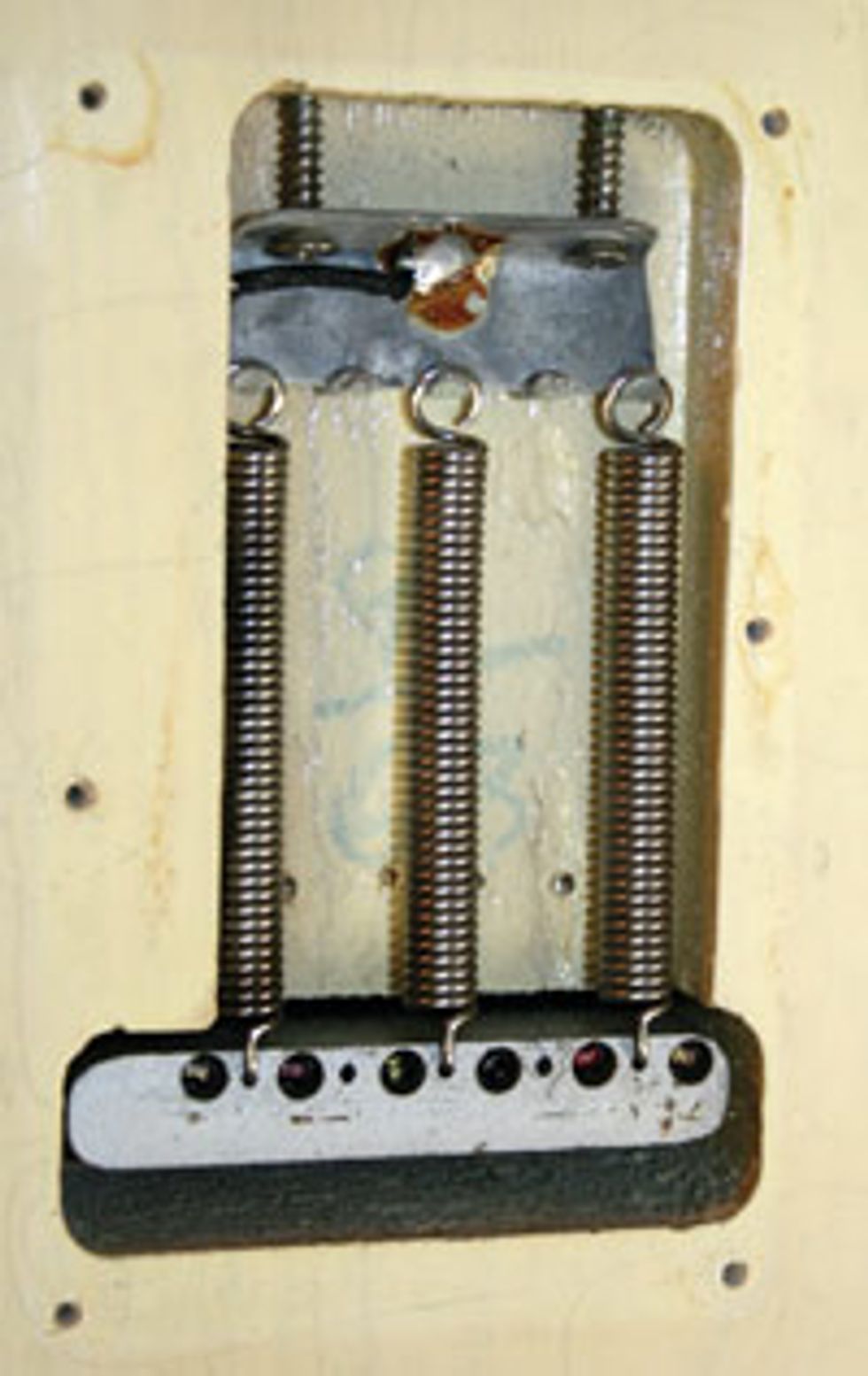 Regardless of small shortcomings, this Fender tremolo bridge was resilient to abuse, and if its design was understood, players had no problem maintaining it. To alleviate friction at the nut, many players chose to tighten the springs in the back to anchor the baseplate firmly to the body, giving it only downward motion, and limiting the amount of friction hang up in the nut.