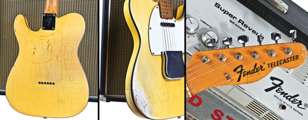 The 1968 Telecaster Custom pictured this month has a custom olympic white finish with black binding (black binding was used occasionally for a light-colored guitar). The body is finished with a thick-skin polyester base coat, which was new to ’68. The maple neck with separate maple fretboard still has a traditional Fender nitrocellulose lacquer finish, but by ’69 polyester-finished necks became standard. The headstock boasts the bold black CBS logo, which was first seen on Customs in ’68. The 1968 list price for a Telecaster Custom was $259, plus $58 for a case. A maple fretboard was an extra 5 percent, as was the custom color. The current value for this well-used Tele is $10,000.