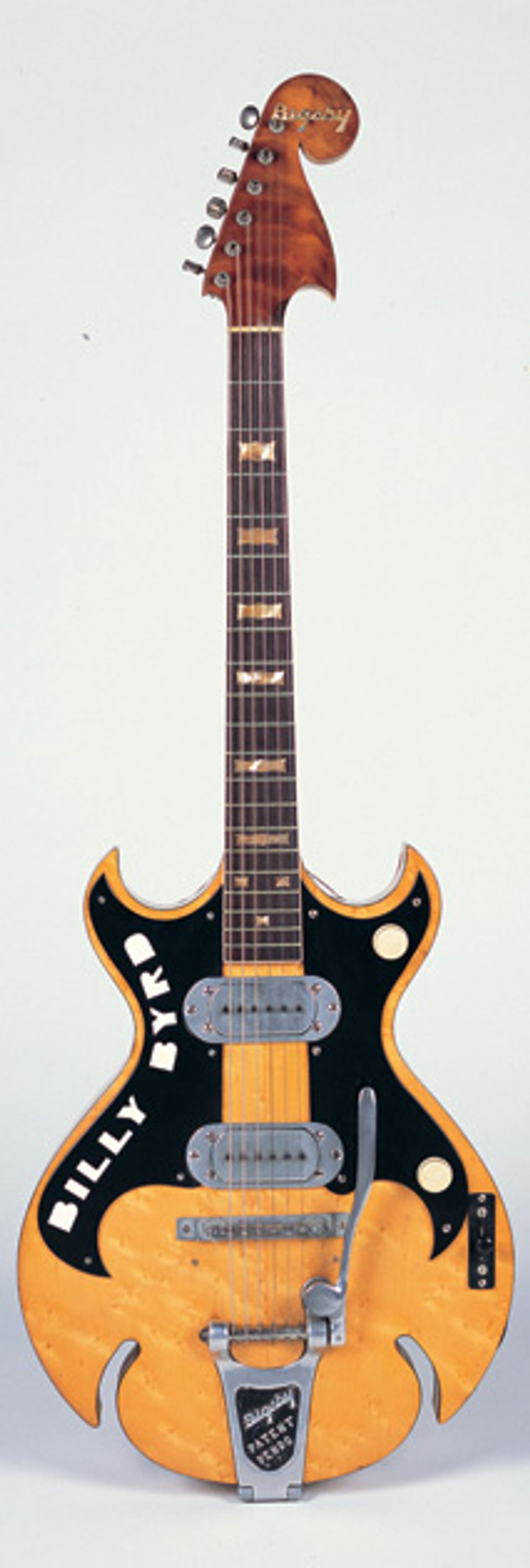Tremolo pioneer Paul Bigsby finished work on this guitar for country session ace Jimmy Bryant on October 7, 1949, though it ended up going to Ernest Tubb sideman Billy Byrd. The vibrato—which is inset to be flush against the guitar’s top—was added not long after the design’s introduction in ’52. Photo courtesy of Bigsby/Fred Gretsch Enterprises, Ltd.