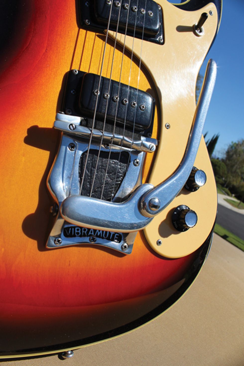A vintage Mosrite Ventures model featuring one of the earliest Vibramute tremolos. Photo by Deke Dickerson