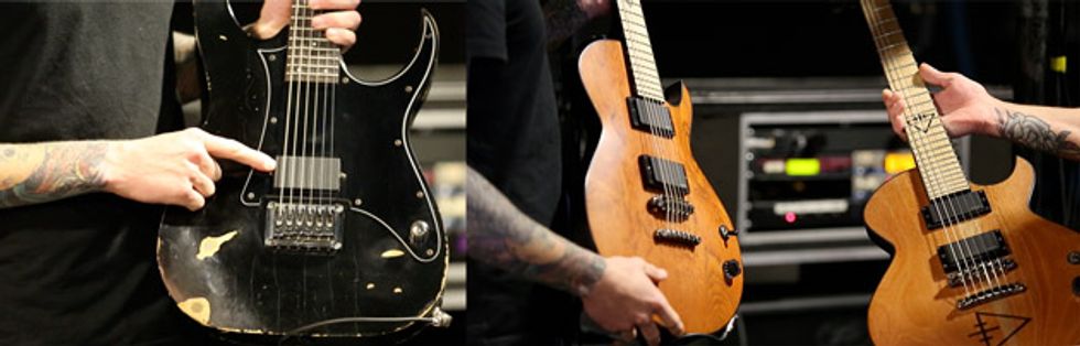 On March 21, 2014, Premier Guitar’s Perry Bean met with Mike Hranica, Jeremy DePoyster, and Chris Rubey of The Devil Wears Prada before their show at Rocketown in Nashville. The metal-core band’s three guitarists mix heavy, drop-tuned, overdriven guitars with trippy, soundscape effects. Carrying about as many pedals as a well-stocked guitar store, they skillfully combine their three distinct tones to create a wall of sound.