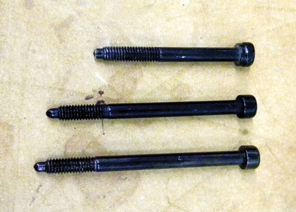 As I mentioned earlier, the D-Tuna ships with two different length screws for attaching the D-Tuna to the bridge. Photo 5 shows the original screw (top) compared to the longer replacement screws. Choose the replacement screw that gives you enough room to fully disengage the D-Tuna and thus drop the low E to D. For this guitar, I used the shorter of the D-Tuna screws.