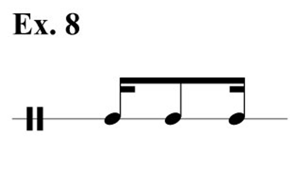 Next, think of a simple rhythmic figure and apply this to the melody. For example, take this typical rhythm in Ex. 8.