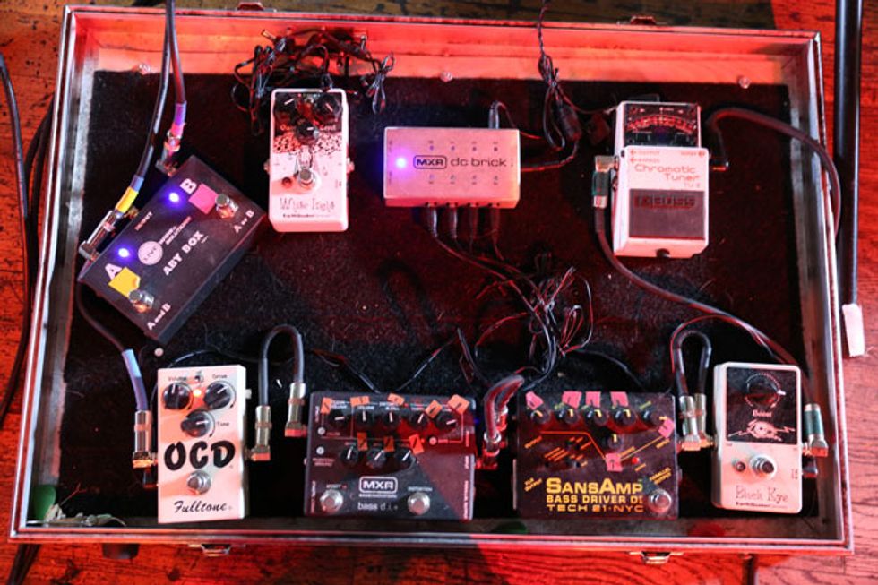 The indie-rock outfit jams with classic Gibson axes, baritone beasts, tube amps, and enough stompboxes to fill a store.