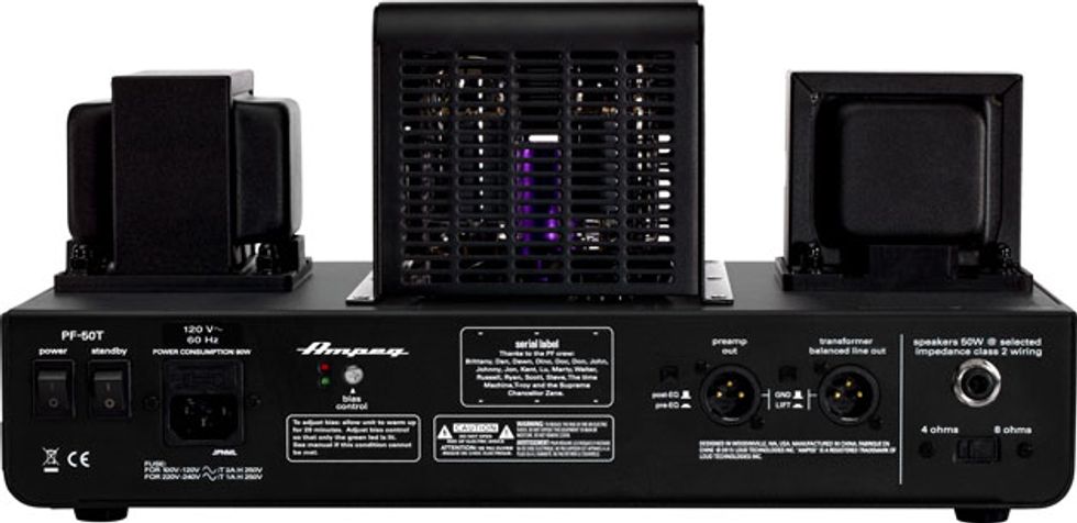 Ampeg’s huge impact on the world of bass amplification is no secret. The SVT is a standard onstage rig and the B-15 is a staple in recording studios the world over. Not only has Ampeg set the bar high for the rest of the amp realm over the years, but for themselves in their quest to push forward in designs and features, yet maintain a respectful nod to the tone and builds that made them so significant in the first place. Enter the new all-tube PF-50T—a flexible, rock-solid amp that captures the spirit of Ampeg classics of the past, and offers an innovative feature that should be an industry standard.