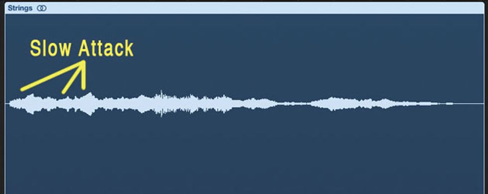 Sometimes you see two parallel waveforms in the same box. This simply means it’s a stereo recording. Image 3 depicts a similar string recording, this time in stereo.
