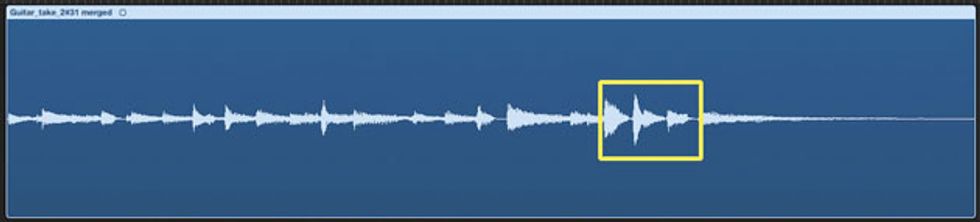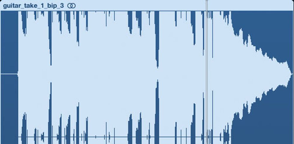 See it, snip it. In the analog days, you’d find the best splice point by slowly rolling the tape over the deck’s playback head. But digital recording provides an invaluable visual aid: the waveform, a graphic representation of your recording.