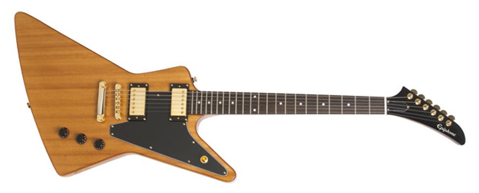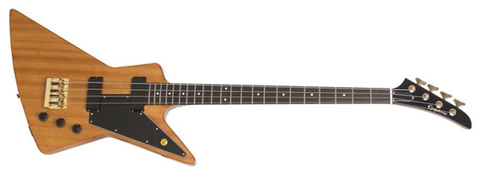 To compliment the Ltd. Ed. Explorer, check out the one-of-a-kind Ltd. Ed. Korina Explorer Bass with powerful Epiphone XR™ and XT™ humbuckers. Controls come with vintage-style Black “Top Hat” knobs plud gold hardware and premium die-cast machine heads. Visit Epiphone.com or your Authorized Epiphone Dealer for details.
