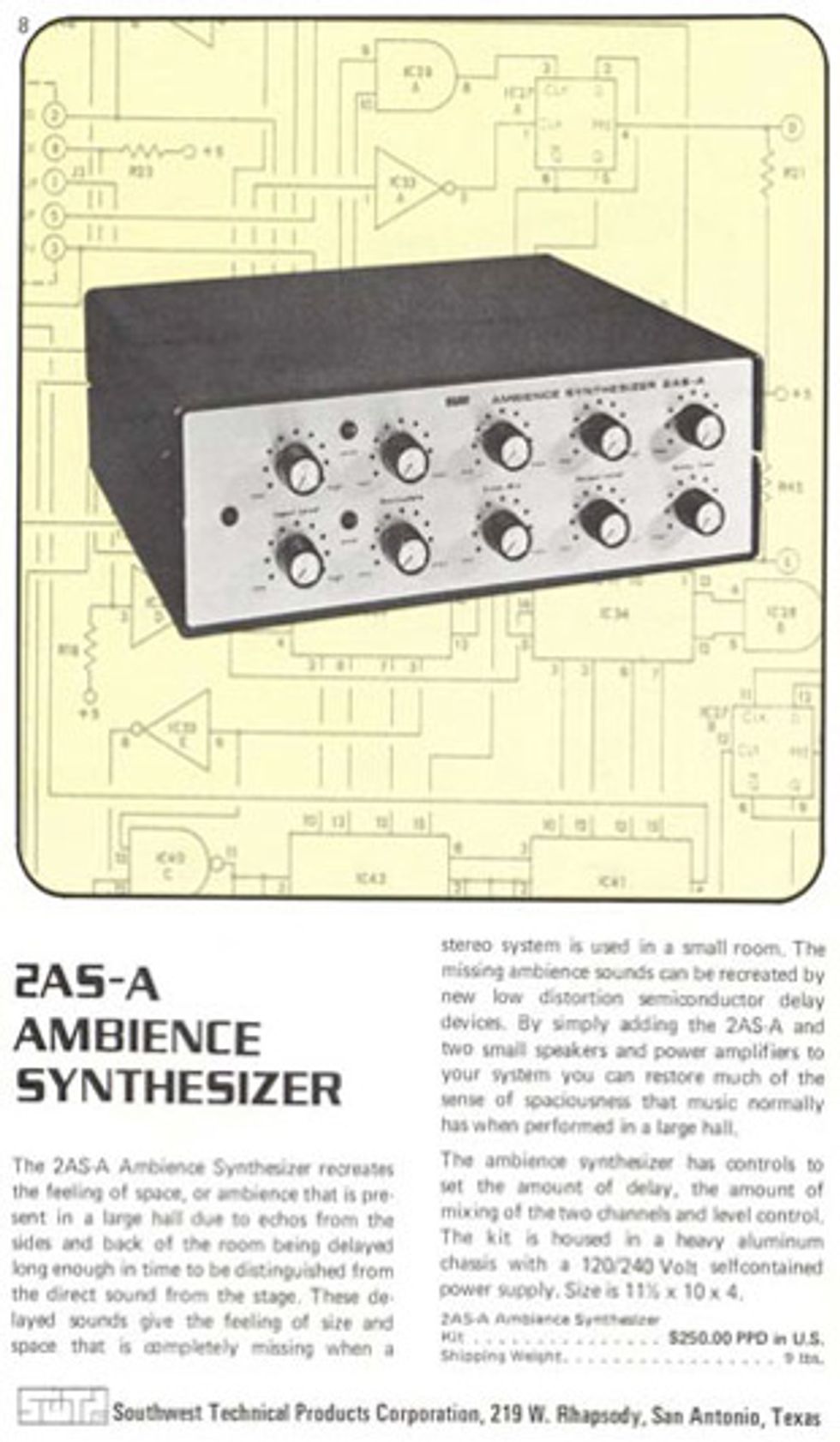 A vintage ad for SWTPC’s Ambience Synthesizer, which used three 1,024-stage BBDs in series.