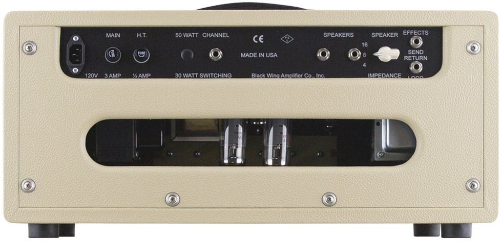 It was on the gain channel that I really heard how the way the Black Wing can drive a 4x12 cab. Heidrich worked with Celestion to create a 60-watt proprietary speaker based on the company’s V30. The presence in the upper-mid register was especially nice, and my Stratocaster and Telecaster proved a great match in almost any setting.