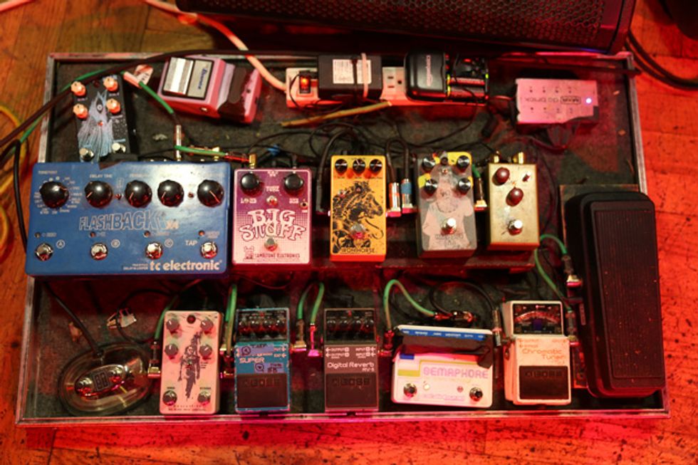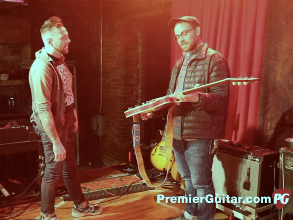 Michael Weiss and Brandon Beaver (above right) hung with PG’s Perry Bean before their show at Nashville’s Mercy Lounge. Weiss and Beaver walk through the axes, stomps, and amps they are using on this tour that celebrates the 15th anniversary of their album, [A-->B] Life.