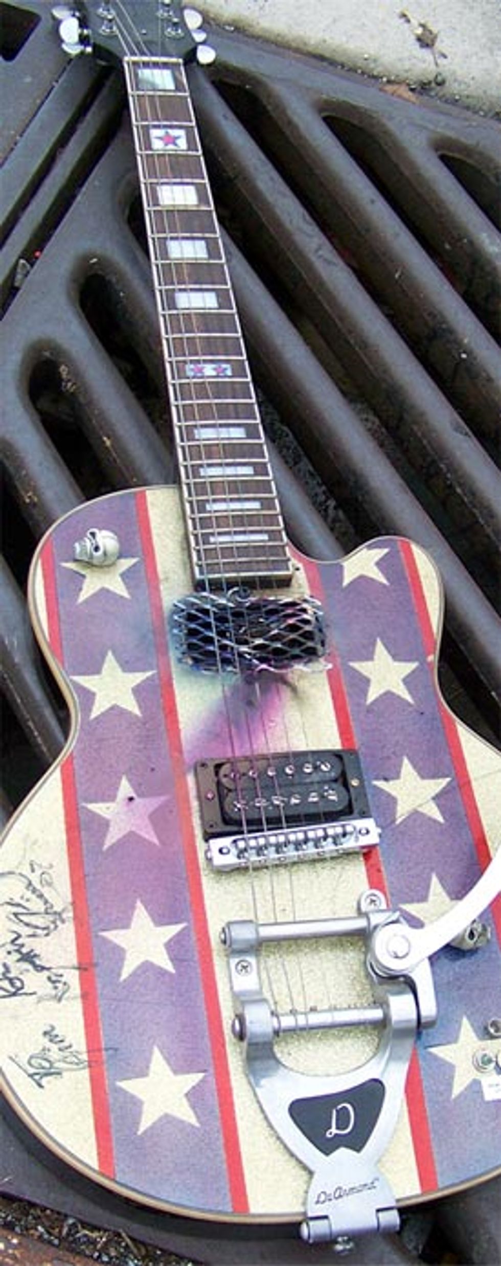 I’d have to say our hot-rod flame, snakeskin and camouflage models are our most popular, with additional paint schemes on request. Who are some artists you’ve done work for? The most recent were the two polka dot flying Vs for Zakk Wylde, plus we have also built guitars for Pat Smear of the Foo Fighters, Michael Anthony and Dweezil Zappa.