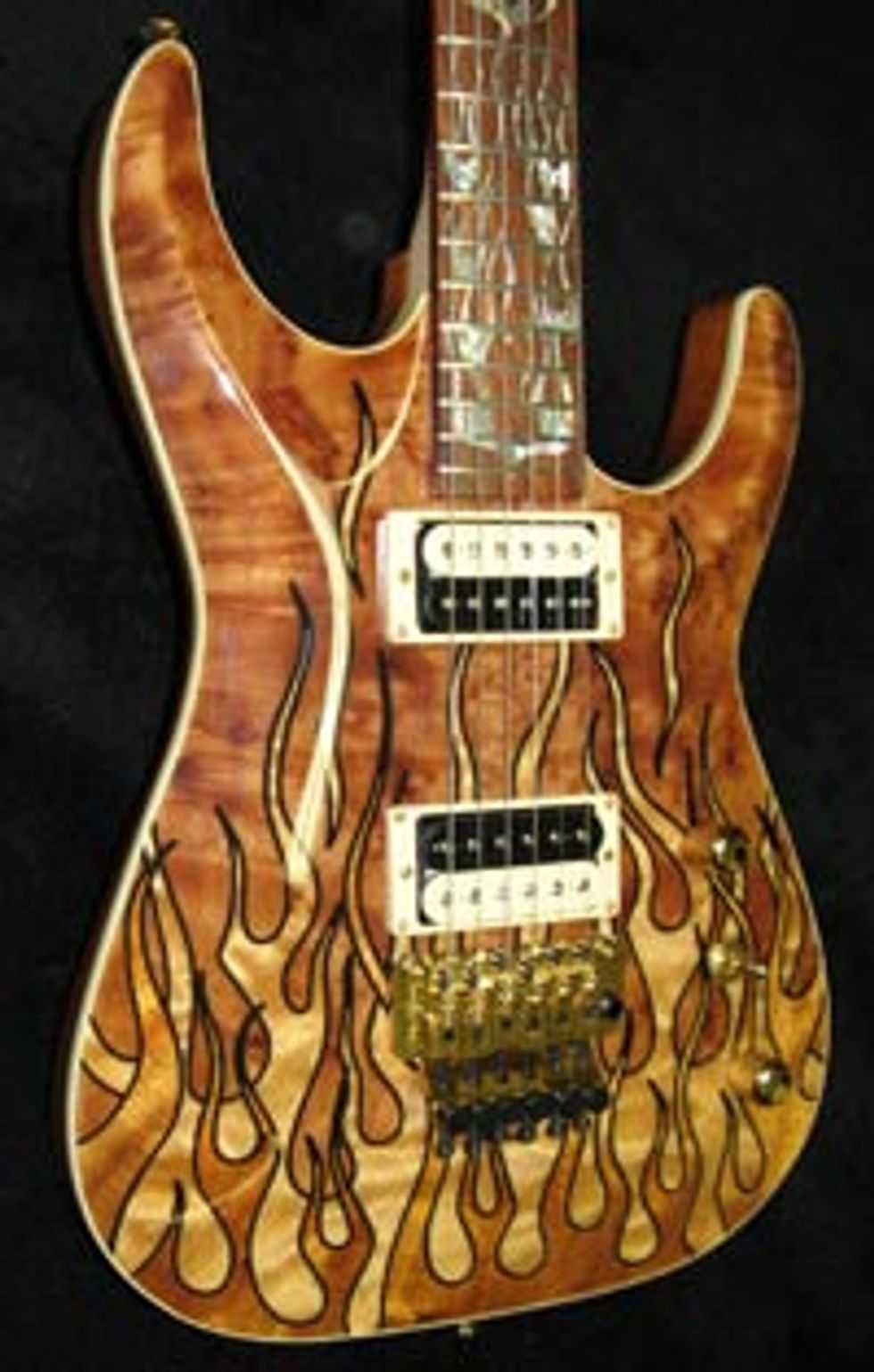 We still have our influences from the eighties and nineties flowing in our shop with the graphics. With the Empire line, we blended it in a manner where we’ll have exotic woods, but the overlays on those will be intense graphics. We’ll cover the traditional guys with straight ahead paint schemes and colors—guys into graphics and eye-catching designs—but also a blend of both those worlds. While they may want different paint jobs and graphics, our client base seems to be rooted in that Jackson/Charvel camp of smokin’ guitars and crazy, colorful designs.