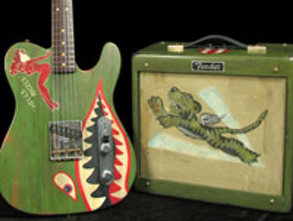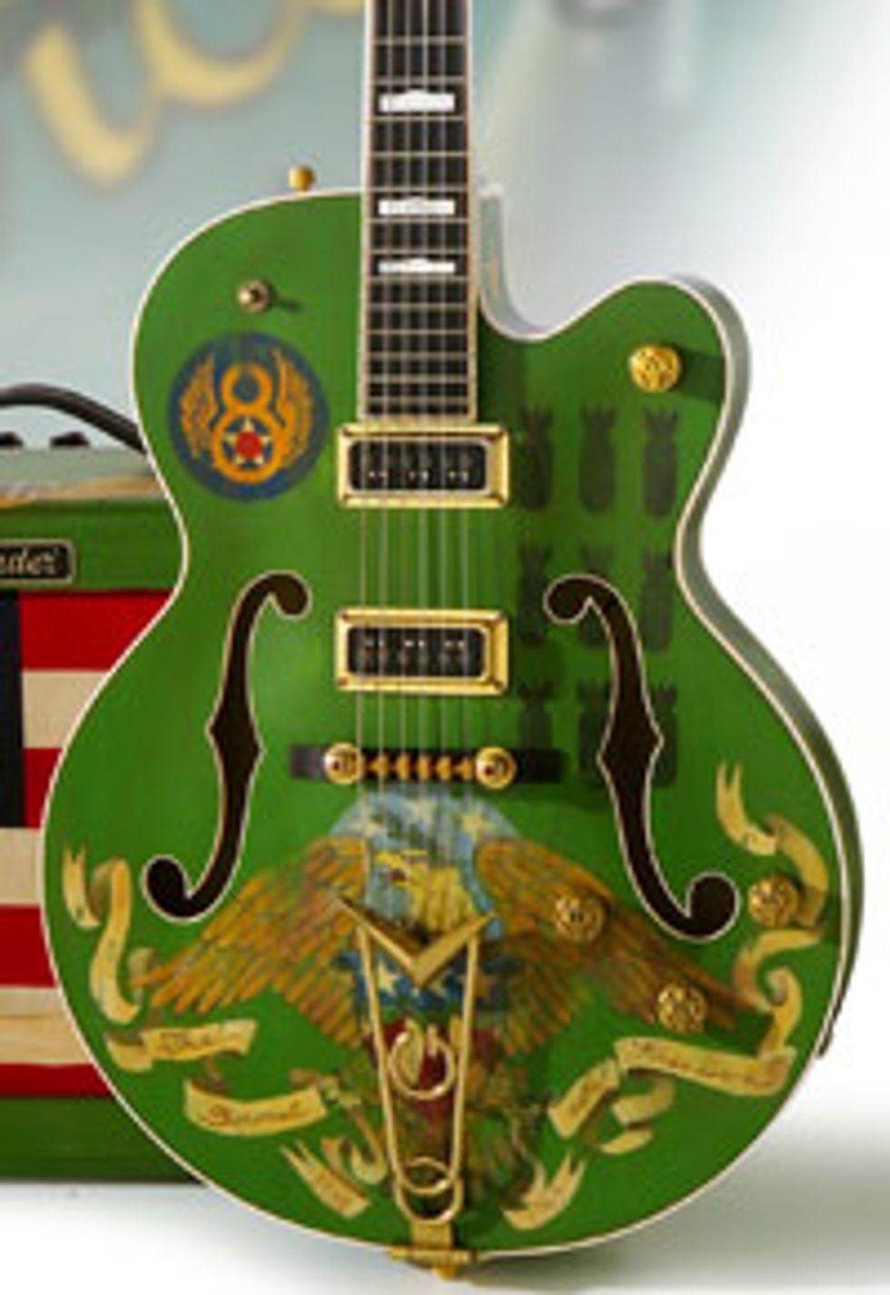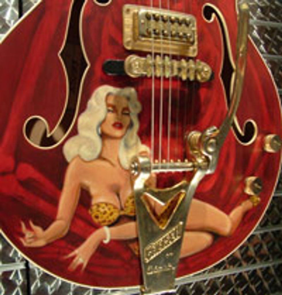 Someone at Fender/Gretsch came to me… I think they actually found me at one of the big car shows, because a lot of the builders love cars and motorcycles, and they’re usually there. And they asked me if I’d paint a guitar but they didn’t give me a theme. That turned into the Victory Guitar, which was a Gretsch 6120 that was going to be for the NAMM show in Tennessee. I did a WWII [theme], not really sure what they wanted from me, and it’s now on display at the 8th Air Force museum.