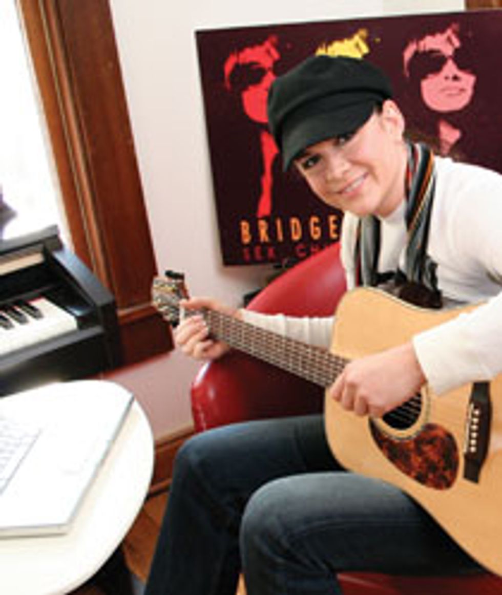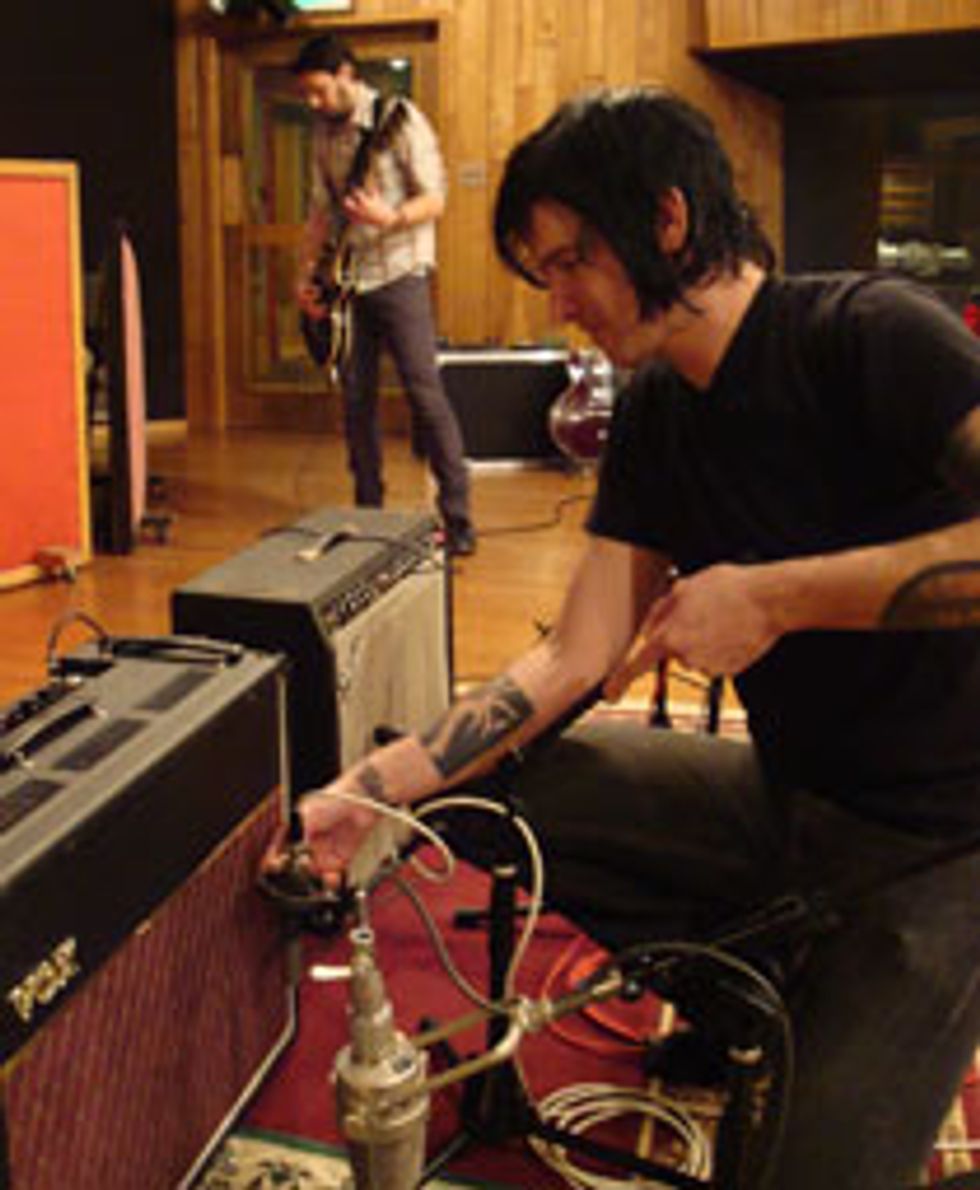 I usually go directly into my Mac and even use my laptop’s built-in mics. You’ll see a lot of people using the USB-powered Snowball mic [Blue Microphones] at sessions. I play a Martin Alternative X with an aluminum top and a Voyage Air acoustic—they sound great through the snowball. That’s all I need to record and print a decent demo for taking into the studio to track with. The only problem with the snowball is that it is bulky; it can be hard to lug from writing session to writing session.