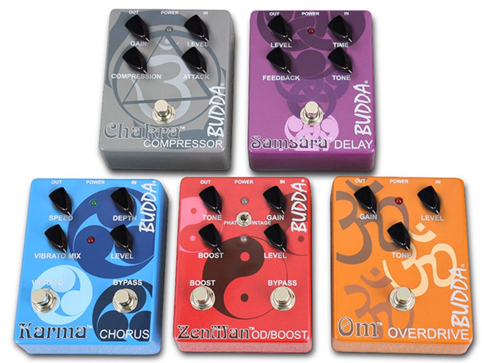 Meridian, MS (April 22, 2013) – Budda Amplification, creators of award-winning boutique amplifiers, announce their highly anticipated new line of guitar effects pedals are now available to ship. With the Samsara Delay, the Om Overdrive, the Karma Chorus, the Chakra Compressor, and the Zenman Overdrive/Boost, Budda raises the bar for effect pedal quality, craftsmanship, and tone.