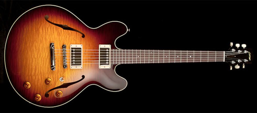 Austin, TX (April 8, 2011) -- The new I-35 LC features high-quality laminate construction (LC) that faithfully reproduces the vintage semi-hollow tone and response desired by professional working musicians. Built alongside their solid wood counterparts with the same meticulous attention to detail, the new LC's offer a unique tone that expands upon the sonic palette of our electric line.