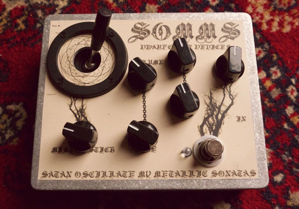 Eau Claire, WI (November 15, 2011) -- Dwarfcraft Devices has announced the Satan Oscillate My Metallic Sonatas, or SOMMS pedal. They say, "For SOMMS, we looked back at our squarewave synths, Thumping Double Squaresnakes and Rot Yr Brain and thought, 'Well, we could squash these together into a super synth of limitless evil.'"