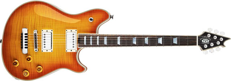 The guitar’s mahogany body has a 1/2” arched maple top and seven-ply binding, a bound mahogany set neck with dual graphite reinforcement rods, and a 24 3/4” scale length. Features include a compound radius (12”-16”) ebony or rosewood fingerboard, 22 vintage stainless steel frets, seven-ply headstock and body binding, mother-of-pearl headstock logo inlay on ebony, dual EVH Wolfgang Custom nickel-covered humbucking pickups with three-position switching, stop-tail bridge with fine tuners, EVH custom tuners, dual EVH custom low-friction 500k volume pots, dual EVH custom high-friction 250k tone pots and an EVH molded-stripe case by SKB. Available in Black, White and Vintage Cherry Burst.
