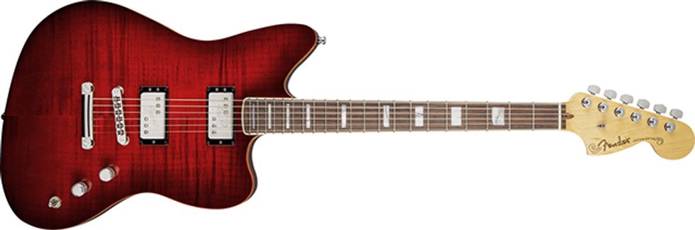 The all-new Fender Select Carved Maple Top Jazzmaster is a distinctive high-end version of a venerable Fender classic. It boasts a potent pair of new Wide Range Special humbucking pickups and a "channel-bound" rosewood fingerboard—a brand-new Fender innovation in which the compound-radius rosewood fingerboard is "inlaid" into the thick modern "C"-shaped maple neck. In addition to creating a stylish new look, it imparts an amazingly comfortable fretting-hand feel in which both edges are pleasingly rounded, with no side seam between neck and fingerboard.