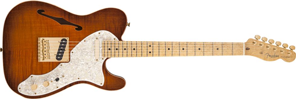 The Fender Select Telecaster Thinline presents a finely crafted take on the popular semi-hollow version of our very first guitar model. Stylish and light, it has a semi-hollow ash body with a beautiful flame maple top and hand-stained Violin Burst finish with gloss lacquer topcoat. The Fender Select Telecaster Thinline with Gold Hardware offers the same specifications with the additional touch of gold hardware.