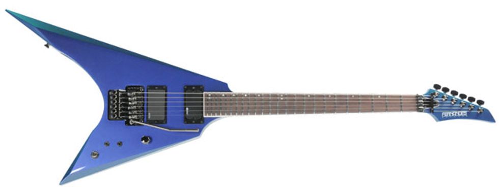 Los Angeles, CA (March 22, 2011) -- The Japanese-made V-Hawk Elite, features an ultra-thin neck, unique Chameleon finishes (purple or green) that change color with viewing angle, EMG 81, Gotoh tremolo and tuners, a smooth heel joint, and a lower body cutaway to provide full access to higher frets. The guitar also features the patented Fernandes Sustainer.