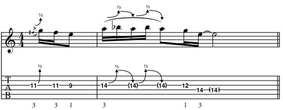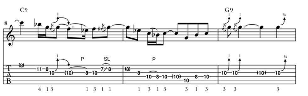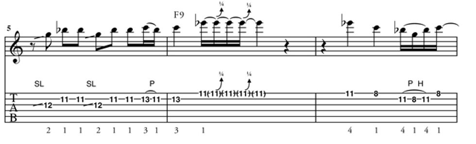 Play the following licks with lots of attitude. They will all work over an E9 chord, but try them in different keys as well.