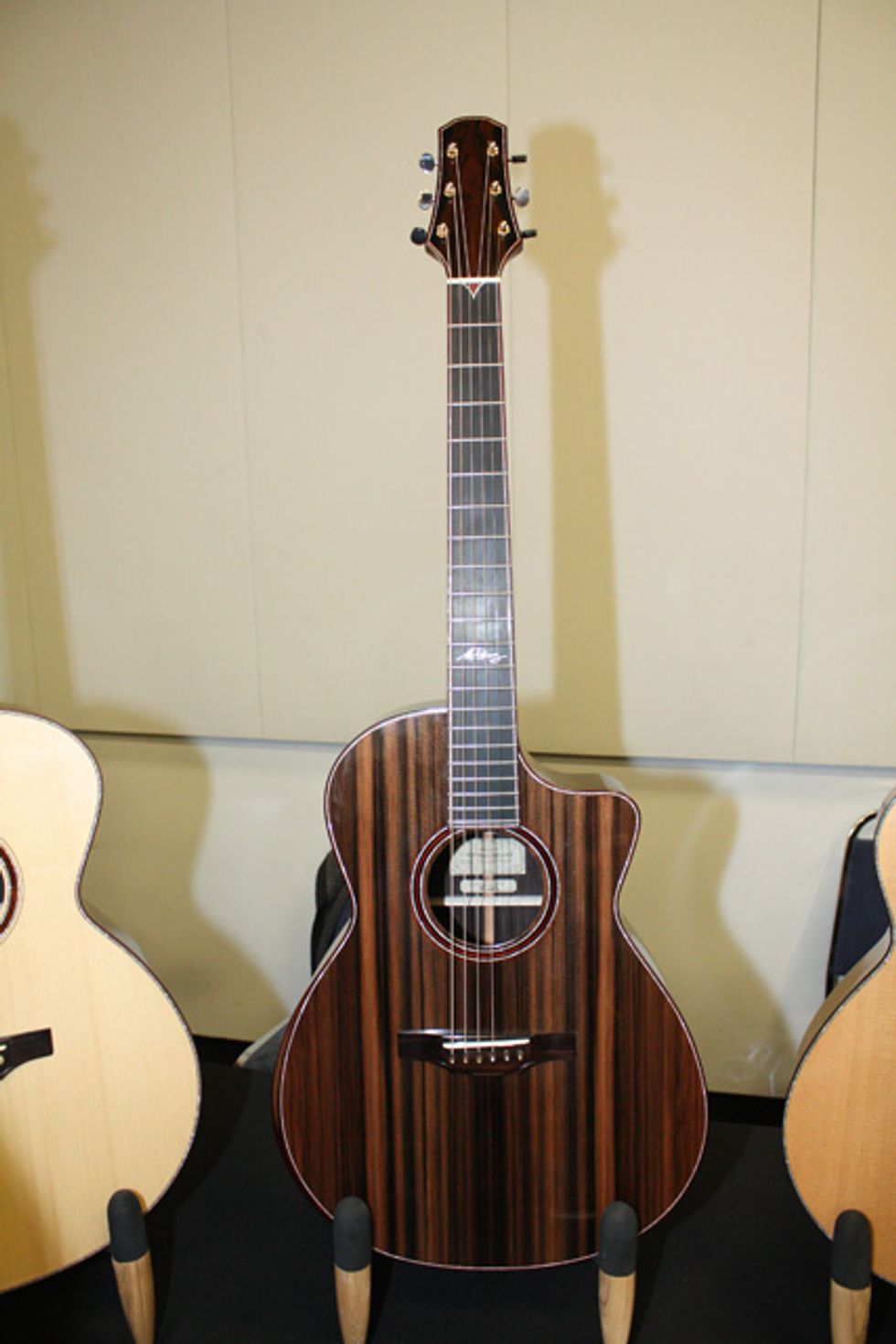 Thomas Fejoz designs around 12 guitars a year. He exhibited a super jumbo 12 string, a new 6-string model and an Alize at the show. ![]() |