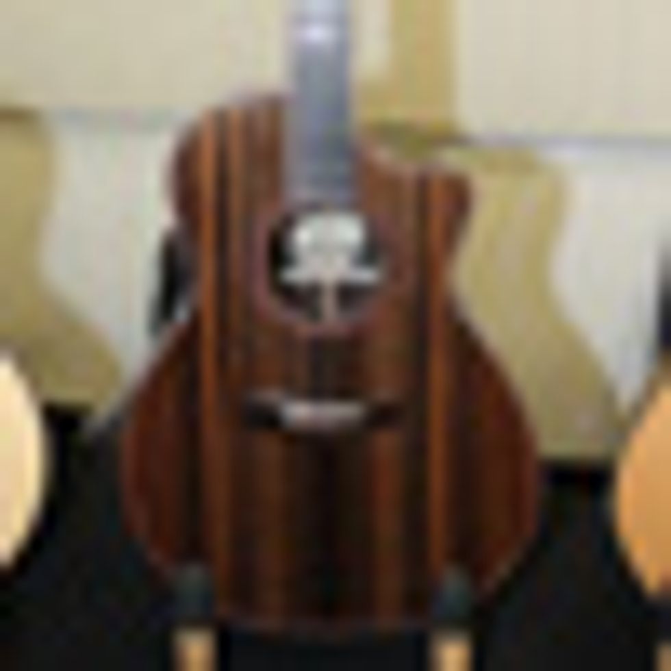 Bill Tippin of Tippin Guitars has been designing, building and repairing stringed instruments for the past 30 years. He showcased a Crescendo Al Petteway (Staccato Fan Fret series) and a Bravado at this year's show.