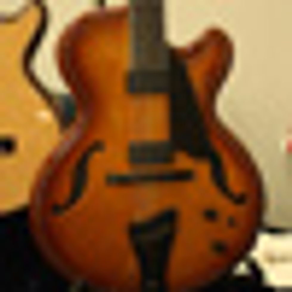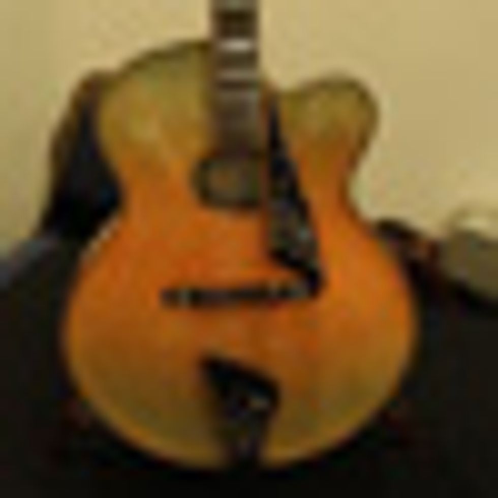 This 17'' archtop acoustic-electric guitar from Ribbecke Guitars is an "X"-braced traditional instrument, featuring a hand-carved and graduated top and back. Four different archtop models are available in traditional or modern shape with several peghead designs.