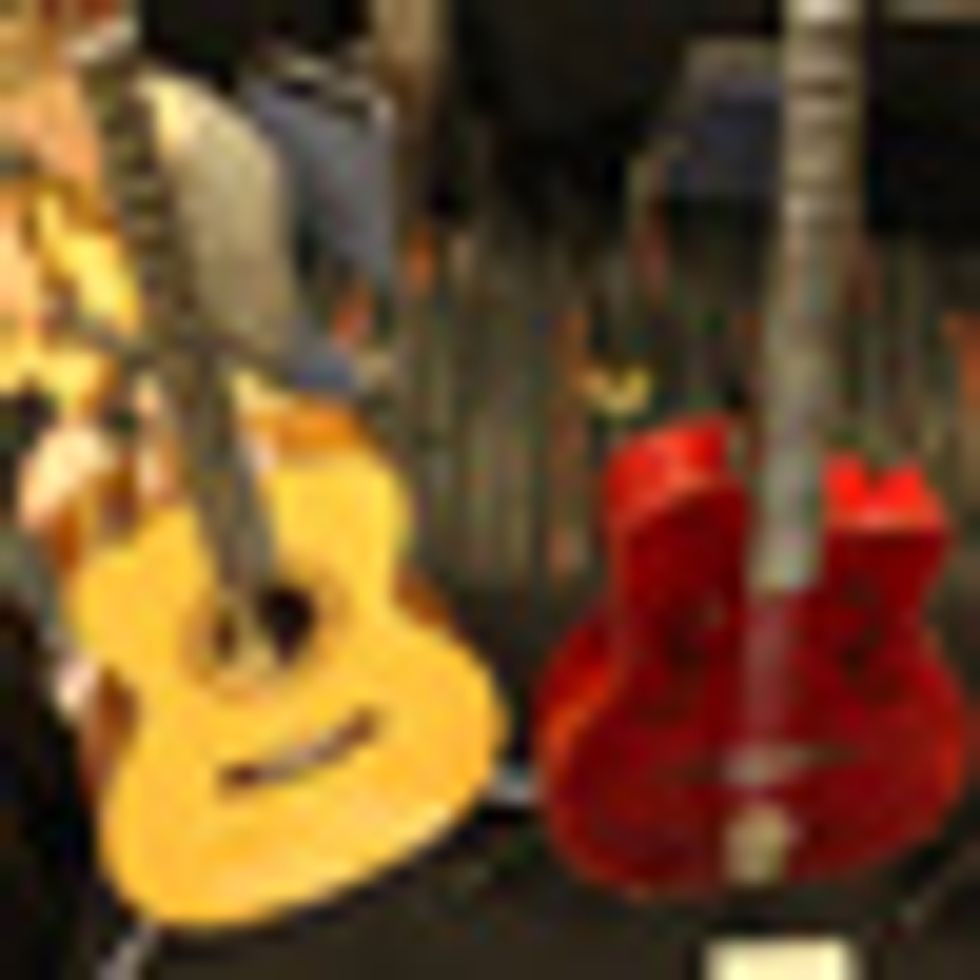 Randy Muth of R. S. Muth Guitars exhibited three special steel string guitars. Muth believes in building upon classic design features. ![]() |